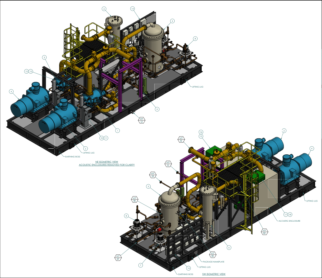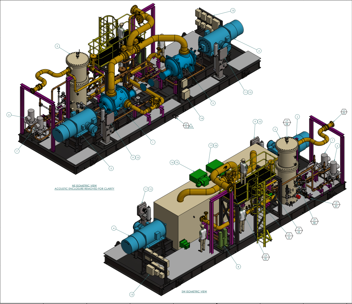 compressor, heat exchanger, scrubbers, piping, fittings, flanges, seal gas